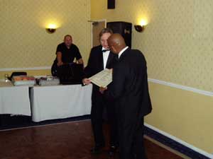 | BIKO ANNUAL DINNER, DANCE & AWARDS The Quality Hotel, Hatfield, Hertfordshire 3rd December 2005 The First Fellow of the Institure Awarded to MR GRAHAM MCCANN - 4th DAN from Scotland Biko ended 2005 calendar with its first Christmas Dinner / Dance and Presentations. This was held At The Quality Hotel, Hatfield, Hertfordshire. The event, although a small affair, brought together 75 people, the Executive and their partners, plus many senior grades and students from the grassroots. In line with other professional institutions, BIKO are now awarding fellowships. These are awarded to people that have made a notible contribution to karate over many years. In particular they are awarded to people that have supported BIKO events, and work hard for karate generally. MR Graham McCann flew down from Scotland to recieve his award of Fellow of the Institute, which entitles him to all the privilidges and facilities of the organisation for life membership. This prestigious rank has been awarded for the first time, and to a person that was not previously a BIKO member. The Chair of Biko, Ken Henville and Chief Instructor, Garth Waldropt made presentations to, The Student of the year, which went to Melanie Smith from Kent and Instructor of the Year, Peter Ashby for his work throughout the year. There was a Special Award and it went to Mick Bazylewycz for representing BIKO in KATA competition at major karate events. There were senior Dan Grade promotions awarded to Alan Beale - 5th Dan, Colin Hanson - 5th Dan, Richard Baker - 4th Dan and Sam Winder - 4th Dan. After finishing a good meal and after all the awards were over everyone had the opportunity to dance the night away. Plans are now afoot to make next year’s dinner and dance an even more memorable occasion. For further details on joining BIKO why not speak to the Secretary, Alan Beale on 01227 369 212 or 07778 169 212 otherwise visit our website, www.bik.org.uk |